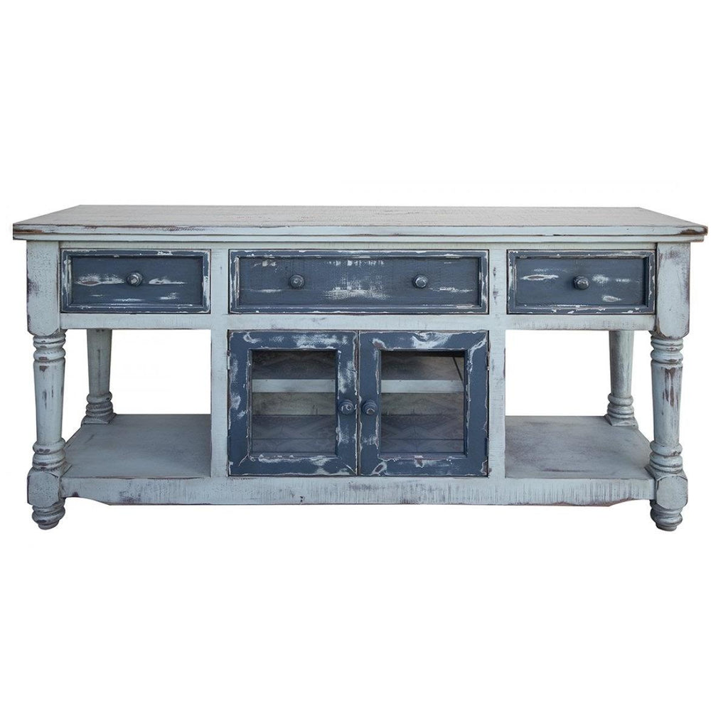 International Furniture Direct Aruba IFD7333STN70BL TV Stand - Sky Blue