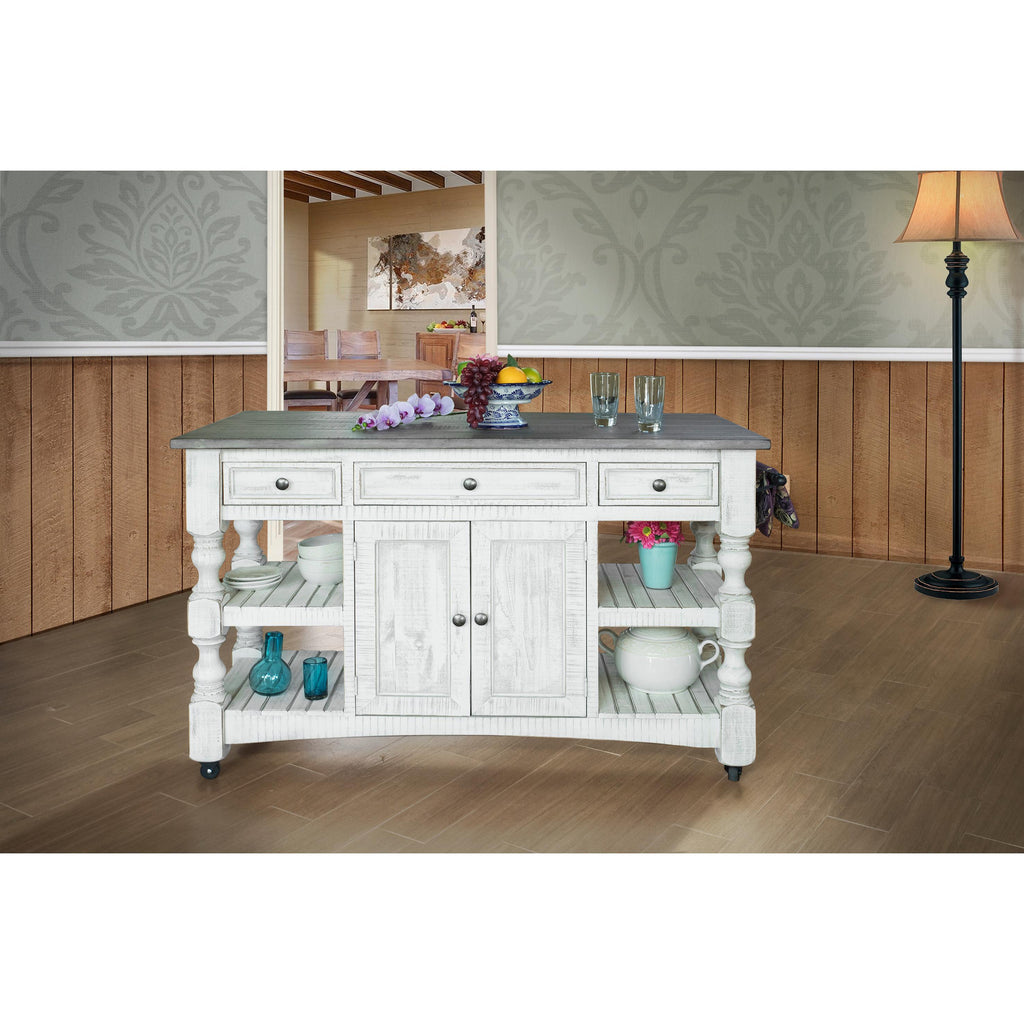 • Two-tone finish features a hand-rubbed off-white finish and warm gray stain on tops