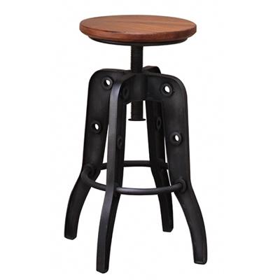 • features 100% solid parota wood, clear lacquer finish, wrought iron base. Versatile stool adjusts to 24 to 30 tall. Ships 1 per box, fully assembled
