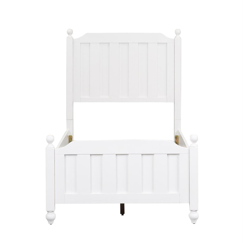 • Square post bed with round finials and slat overlays