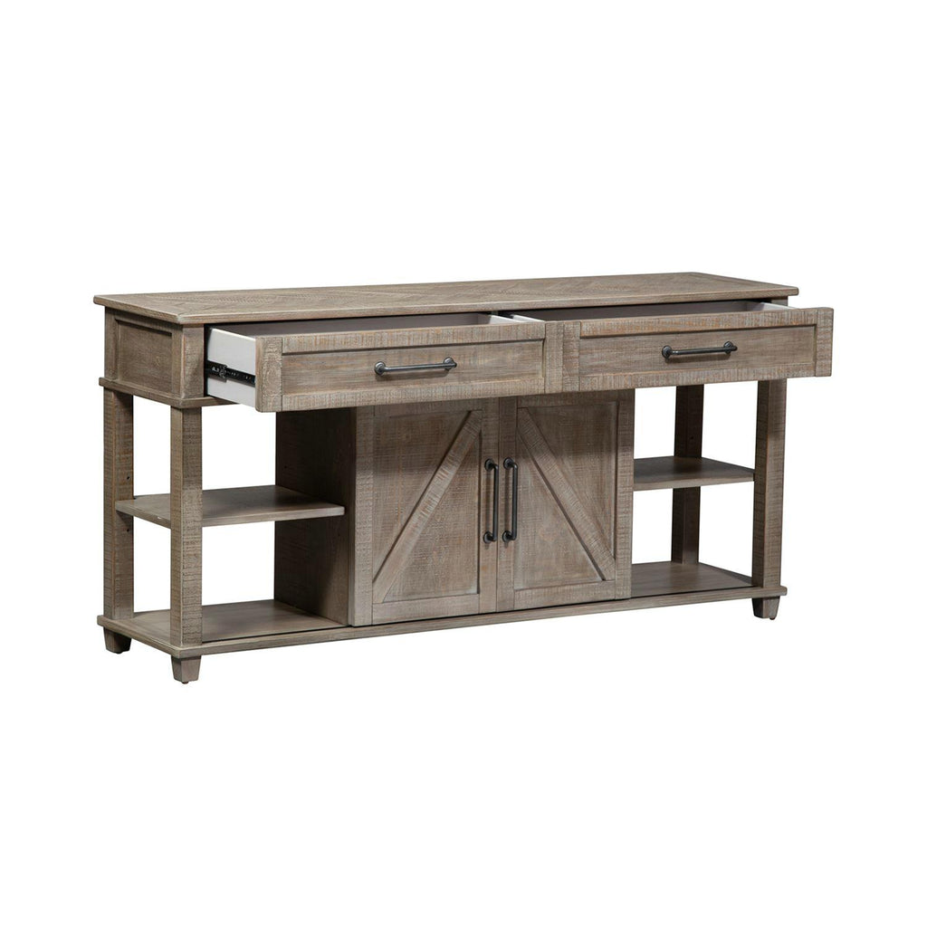 • Features 2 sliding doors with adjustable shelf behind each