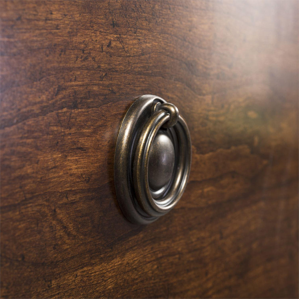 • Antique brass drop ring and key hardware